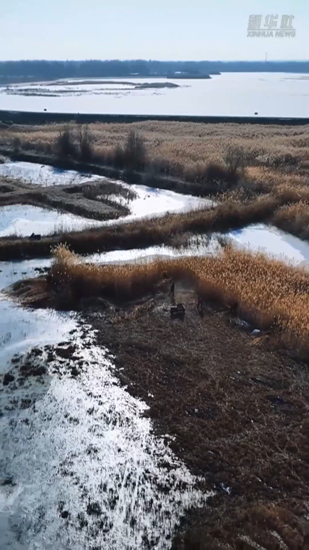 在塔克拉玛干沙漠南缘的皮山县乔达乡巴什拉克村,村民图尔荪江·亚森和乡亲们正弯腰忙碌,手中的镰刀一起一落,成片的芦苇被整齐割下、捆扎。